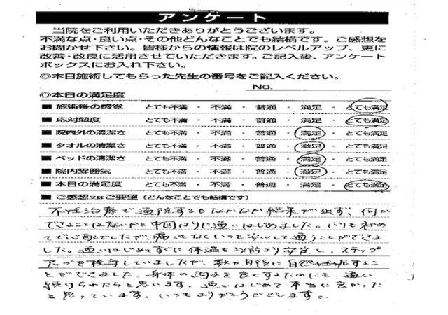 お客様の声:毎年冬には大変悩まされていた頭痛、妹にすすめられて来ました。